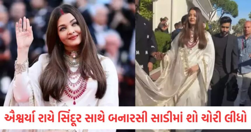 ૭૮મા કાન્સ ફિલ્મ ફેસ્ટિવલમાં રેડ કાર્પેટ પર ભવ્ય વાપસી કરનારી ભૂતપૂર્વ મિસ વર્લ્ડે મનીષ મલ્હોત્રા દ્વારા ડિઝાઇનર સાડી પહેરી હતી. ક્લાસિક સફેદ હેન્ડલૂમ પોશાકમાં સજ્જ, ઐશ્વર્યા રાય બચ્ચને પરંપરાને ભવ્યતાથી સ્વીકારી અને રાજવી સ્વભાવનો અહેસાસ કરાવ્યો. આ સાથે, તેણીએ છૂટાછેડાની અફવાઓને ફગાવીને તેના વાળમાં સિંદૂર લગાવ્યું. સફેદ સાડી સાથે ઐશ્વર્યાનો લાલ હાર અને વીંટીઓએ તેના લુકમાં વધારો કર્યો.