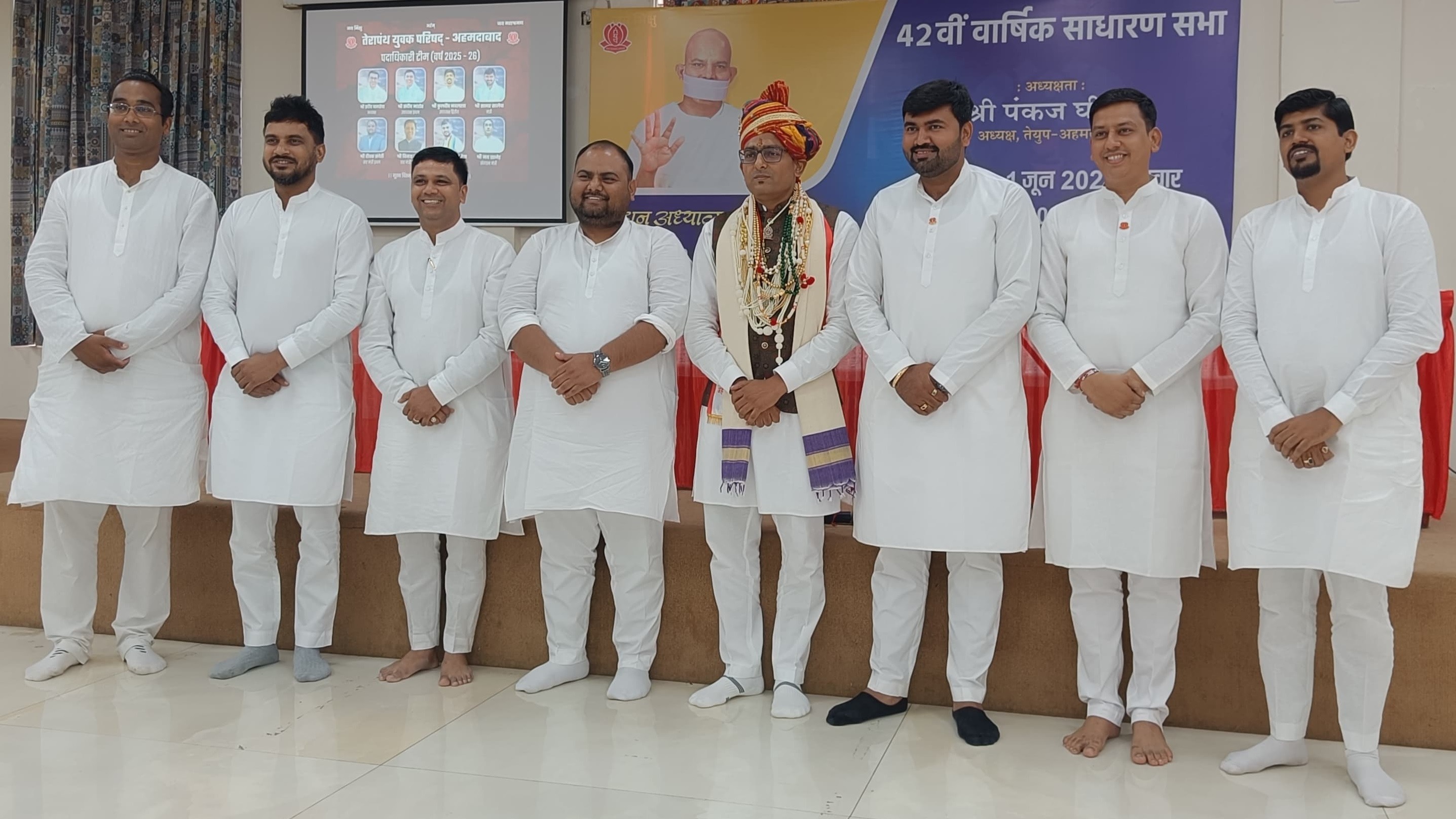 અમદાવાદ. તેરાપંથ યુવક પરિષદની વાર્ષિક સામાન્ય સભા શાહીબાગ સ્થિત તેરાપંથ ભવનમાં પ્રમુખ પંકજ ઘીયાની અધ્યક્ષતામાં યોજાઈ હતી. મુનિ ધર્મરુચિ અને મુનિ ડૉ. મદનકુમારે આશીર્વાદ આપ્યા હતા. મંત્રી જય છજેડે કાર્યવાહીનું સંચાલન કર્યું હતું. ચૂંટણી અધિકારી પ્રકાશ ભરસરિયા અને સહ-ચૂંટણી અધિકારી મનોજ સિંઘીએ તેરાપંથ યુવક પરિષદ અમદાવાદના 2025-26 પ્રમુખ માટે પ્રદીપ બાગરેચાના નામની જાહેરાત કરી હતી.