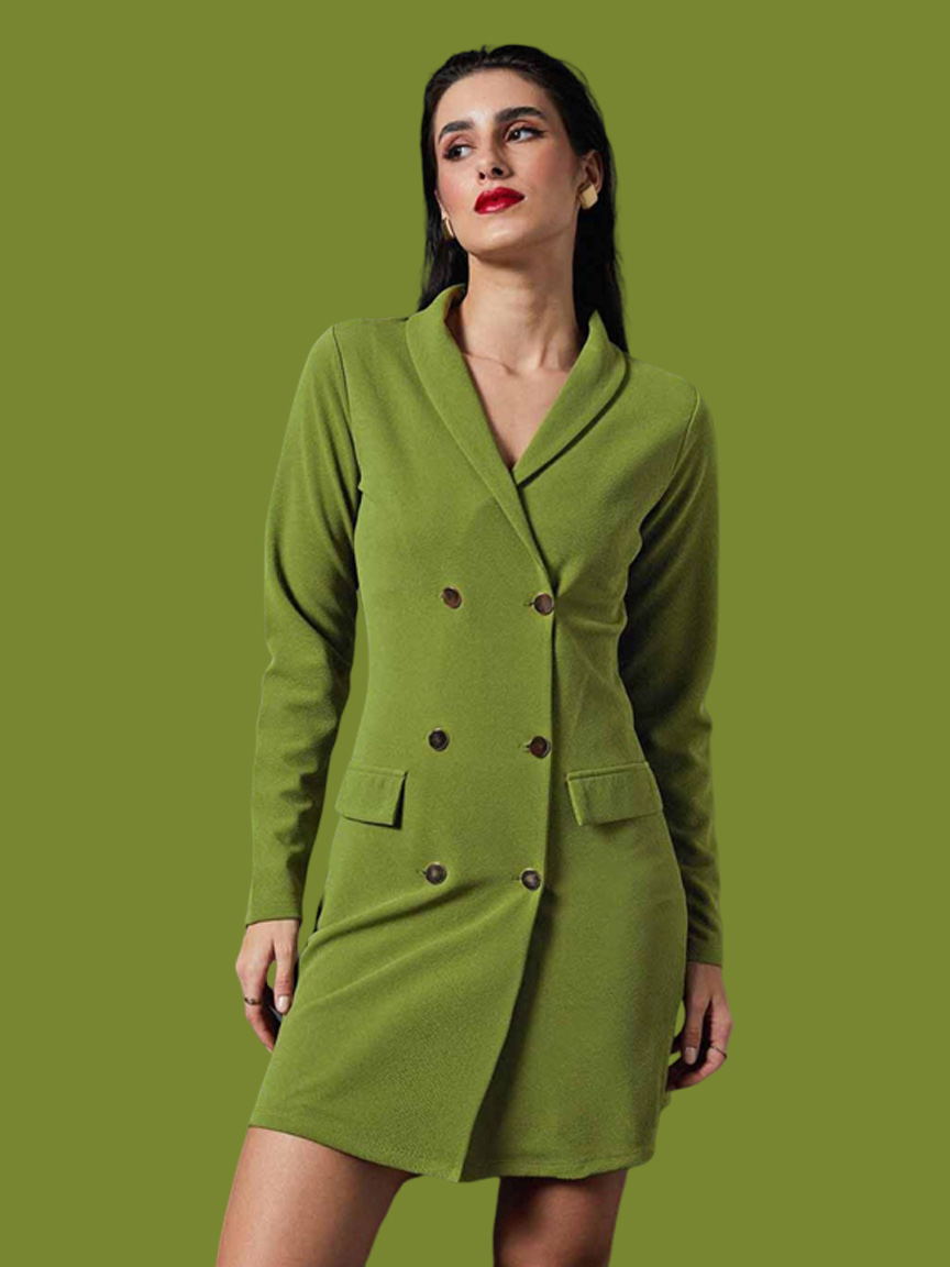 કેટલીક છોકરીઓ રોજ ઓફિસમાં એક જ કપડાં પહેરીને જવામાં શરમ અનુભવે છે. આવી સ્થિતિમાં, જો તમે પણ એક જ કપડાં પહેરીને કંટાળી ગયા છો અને એક ભવ્ય દેખાવ મેળવવા માંગો છો, તો તમે આ સુંદર શાલ કોલર ગ્રીન બ્લેઝર ડ્રેસ પહેરીને તમારી ઓફિસ જઈ શકો છો. આ પહેરીને તમે ખૂબ જ સુંદર દેખાશો. તમે આ ડ્રેસ ઓનલાઈન અને ઓફલાઈન બંને રીતે ખરીદી શકો છો.