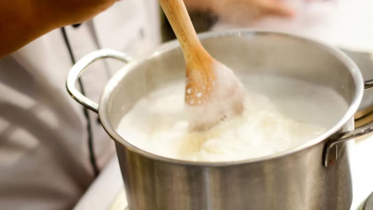 પેનમાં દૂધ ઉમેરો.